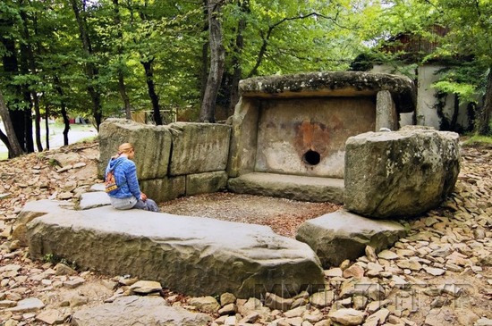 Дольменов в горах очень много; среди них есть те, которые уже давно измучены и опошлены туристами: кто-то из них поспешил оставить свои незатейливые инициалы на тысячелетних громадинах, а кто-то совершает здесь тайные ритуалы в поисках источника вечной силы... Ребята, которые водили нас по горным тропам, показали нам совсем другие дольмены, о существовании которых знают лишь «местные». Затерянные среди скал и деревьев, они кажутся пришедшими откуда-то неотсюда... То ли следы какой-то ушедшей цивилизации, то ли метки памяти...
