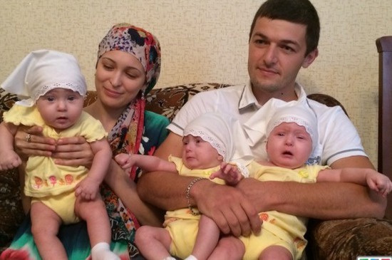 На фото - Рисат и Шамиль Тазиевы, родители тройни. с. Стальск, Дагестан. 2014.
