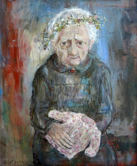 Это картина Нино Чакветадзе "Хранят нас ангелы от бед". Для меня мартовская старуха могла выглядеть именно так. Она не страшная и не злая. Она просто пытается схватиться за последние мгновения своего счастья...И она не старуха, а пожилая женщина...