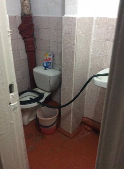 В жилых корпусах водоснабжение постоянно отключено администрацией школы, туалеты и душевая держатся запертыми. Учащимся разрешается пользоваться только уличным туалетом, состояние которого трудно поддается описанию, антисанитария, отсутствие окон, дверей, его вообще не убирают, не вычищают выгребную яму.