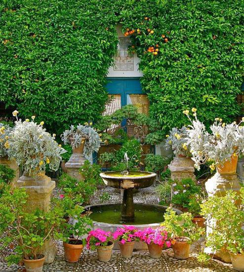 При арабах многое в архитектуре и планировании патио изменилось – эстетические акценты были направлены не на фасад, а на внутреннее пространство жилища, фасады стали проще, а патио стали украшать плиткой. Вода в исламской символике и эстетике всегда играла особую роль, поэтому неслучайным стало появление фонтанчиков, дворики заполнились цветами и фруктовыми деревьями.