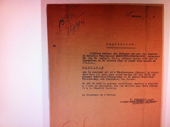 Сертификат, подтверждающий личность Темир-Булата Бековича-Черкасского, выдан во Франции.