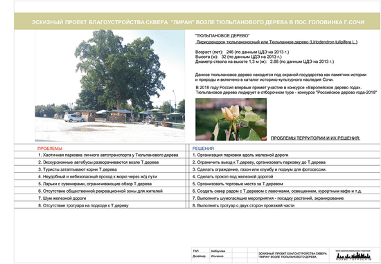 Предполагается, что в рамках проекта развития Головинки новый сквер будет структурирован вокруг Тюльпанового дерева. Дерево характеризуется в проекте только как природная достопримечательность. Обратите внимание - не историко-культурная, а только природная.