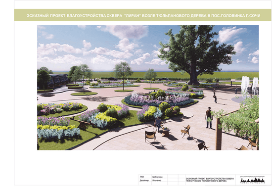 В новом сквере появится фонтан, будут разбиты клумбы, проложены дорожки, появится кафе, будут созданы парковки для автобусов с туристами-отдыхающими. Не вполне благовидные палатки для сувениров, загораживающие обзор Тюльпанового дерева, будут вынесены в пределах сквера на специальные обустроенные торговые места, для личных автомобилей, паркующихся стихийно, теперь будет организована специальная парковка вдоль железной дороги; тюльпановое дерево будет огорожено, чтобы туристы не вытаптывали его основание и т.д. и т.п. В общем, уже к следующему сезону здесь будет «город-сад».