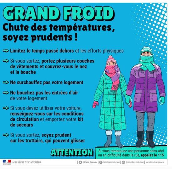 Листовка распространяется Министерством внутренних дел Франции и рекомендует французам, как вести себя в связи с нагрянувшими холодами. А холода, по европейским меркам, во Франции случились нешуточные – минус 4 градуса. Так вот, в листовке говорится следующее: