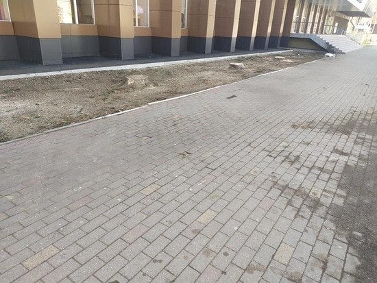 Что нам предлагается вместо? Большой постер на фасаде музыкальной школы рисует нам перспективы «феерического будущего»: теперь место, освободившееся от елей по чьей-то нелепой злой воле, будет укатано плиткой.