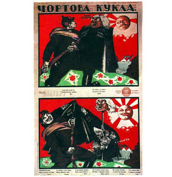 Образы, характерные для кавказской культуры, используются в плакатах, посвященных борьбе с Врангелем. Один из таких плакатов - Чортова Кукла, где Врангель изображается одетым в бурку с газырями, однако в плакате бурка не осмысливается как кавказский атрибут.
