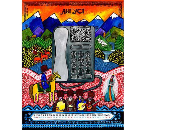 Этот календарь заказала фирма Ростелеком, и каждый художник посвящал свой "месяц" какому-то одному народу России. Август достался кабардинцам. Худжоник - Аня Всесвятская. И чего тут только нет -полный набор - и старейшины с барабанами, и джигит на коне, и его кабардинская муза, и горные заснеженные вершины, и породистые скакуны.. Кому как не кабардинцам можно посвятить август, лучший месяц на Кавказе...очень с юмором и по-доброму)