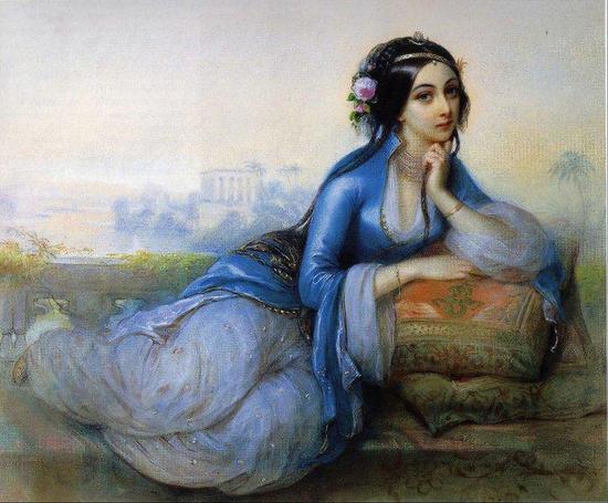Портрет жены анапского паши, черкешенки, авторство которого мне неизвестно, находится в ряду тех полотен, которые выпадали из привычных военных сцен. О женщине, изображенной на картине, известно немного, но ее муж, анапский паша Хасан-Хаджи – заметная фигура в западно-кавказской политической истории XIX века.