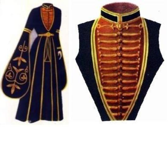 Некоторые исследователи читают, что нагрудник и нарукавник в черкесском женском костюме когда-то были чем-то вроде панциря и налокотника.