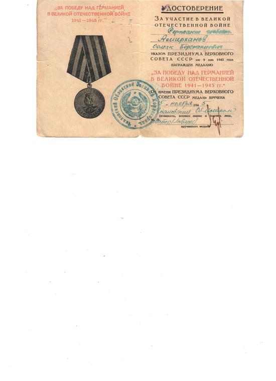 Заретхан вынесла фотографию отца и все удостоверения к наградам. Сами награды хранятся в Ингушском музее. Смотрю на фотографию. Подумала: «У нас, у вайнахов, единицы тех, кто проходил службу в НКВД и «СМЕРШе». Сколько же осталось участников Великой Отечественной войны в республике? Сколько им отмеряно в этой жизни? Как к ним относимся? К их семье. Это гордость и боль наша. Вместе с ними уходит целая эпоха». Спросила Заретхан, почему награды в республиканском музее? Она удивленно посмотрела на меня. Опережая ее, я сказала: «Если Вы не нужны республике, зачем нужны награды Вашего отца?»