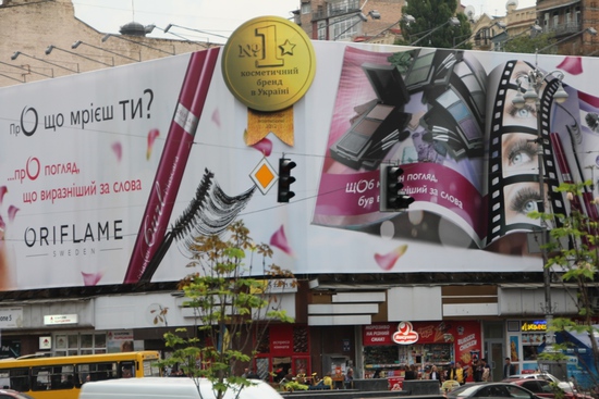 В продолжение публикаций фотографий, сделанных мною во время поездки в Киев, представляю еще одну серию фото. Киев рассчитан не только на туристов, в первую очередь это столица государства, в которой должно быть проживают самые богатые люди Украины. Наличие товаров, рассчитанных на довольно «узкую» категорию населения, обязывает обеспечивать город и такой же рекламой, главным двигателем продвижения их в покупательские массы. Казалось бы, что рекламирует данный автомобиль?