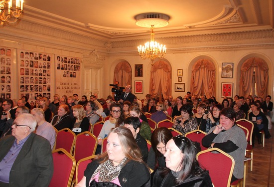 День памяти убитых журналистов, вел Всеволод Богданов, он на протяжении всего мероприятия поочередно вызывал на сцену родных и близких погибших коллег и дарил им от Союза журналистов России пакеты с подарками и конверты с материальной помощью. Родные и близкие погибших журналистов благодарили организаторов мероприятия за память о погибших и внимание к ним. Я впервые был в этом зале, который отчасти напомнил мне собственный офис, где на стене висят фотографии похищенных людей, здесь же, вся стена увешена фотографиями убитых журналистов.