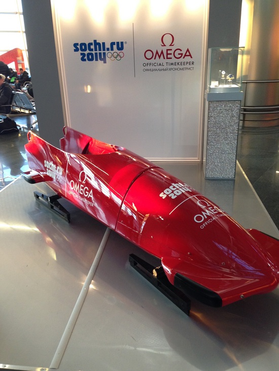 После прохождения досмотра, прошел в зону вылета и увидел самый настоящий боб, специальные сани для бобслея. Вещь довольно красивая и привлекательная, но после визуального восхищения появляется чувство разочарования, или я сказал бы сочувствия спортсменам. Если выражаться автомобильной терминологией, внутри это спортивное транспортное средство, напоминает голый кузов старенькой лады. Все по спартански, ни какого «наворотов», ни кожаного салона, ни каких «опций» и т.д., одним словом бедные спортсмены, добровольно обрекают себя на мучения, и все это, ради выброса адреналина и престижа страны. Меня бы точно ни кто не смог бы заставить, заниматься этим видом спорта.