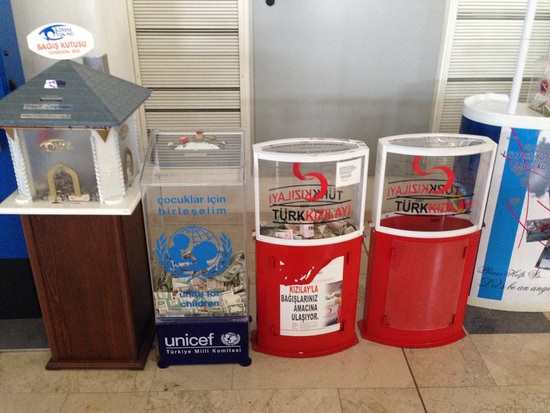 Бывая в различных странах мира, я часто обращал внимание на ящики для сбора средств на благотворительные цели, среди которых видел и ящики Красного Креста. Хотел их показать Мусе Мальсагову, но как-то забывал, а сейчас как раз есть информационный повод их опубликовать.