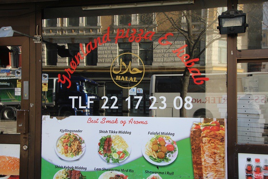 Как мусульманин, я не мог не обратить внимание на наличие пункта общественного питания для мусульман, на витрине которого имеется знак «Халяль». Так же, за несколько дней прибывания в Осло я увидел четыре мечети.