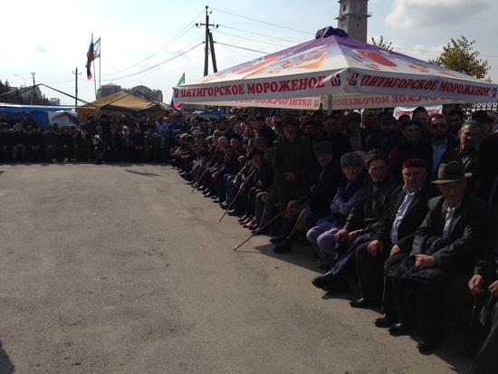 Уже седьмые сутки продолжается народный сход в Магасе. Как и в предыдущие дни, ситуация остается стабильной и спокойной. Ночью в Магасе оставалось около тысячи человек, часть из которых провели еще одну ночь под открытым небом. И с утра народ стал собираться. Сейчас на площади в Магасе собралось около 7 тысяч человек и люди все прибывают и прибывают. В центре площади для нормальной организации митинга была оставлена площадка, коридор, но из-за большого количества прибывающих, его пришлось сократить в два раза, дабы увеличить место для собравшихся.