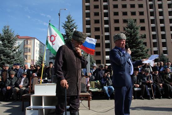 Народный сход в Магасе продолжается уже двенадцатые сутки. Сегодня шло активное обсуждение и согласование делегатов для поездки на переговоры в Пятигорске с представителями администрации президента страны и его полномочным представителем в СКФО. Обсуждение стало всенародным и проходило очень живо. Несмотря на горячее обсуждение, собравшиеся все-таки пришли к единому мнению по кандидатурам. В итоге был сформирован список делегатов в который вошли Ахмед Барахоев, Муса Мальсагов, Бей-Али Евлоев, Малсаг Ужахов, Ахмед Погоров, Висангирей Гагиев, Анжела Матиева и Идрис Абадиев.
