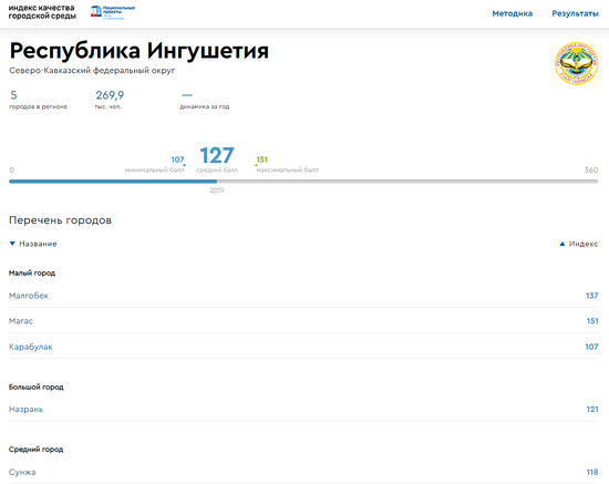 Совсем недавно Минстрой России впервые опубликовал индекс качества городской среды всех российских городов. В их числе оказались все пять городов Ингушетии и конечно же, их рейтинги привлекли мое внимание.