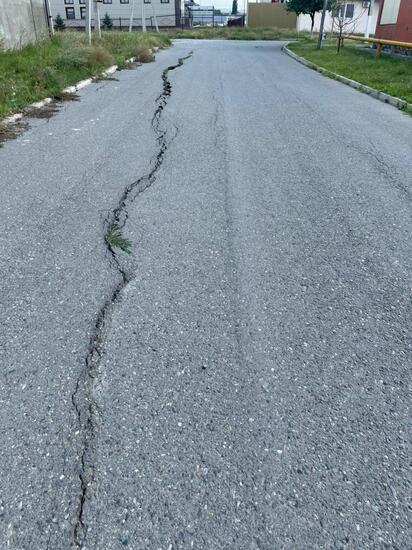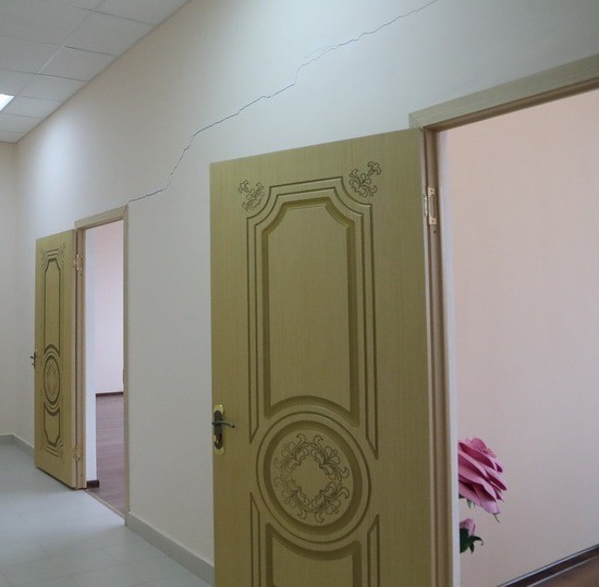 Так вот, конкретно этот раскол, проявился только сейчас, но вот по улицам этого поселка, уже давно идут трещины, разрывая и уничтожая их асфальтовое покрытие. А у въезда в поселок, стоит так и не введенное в эксплуатацию здание скорой помощи, стены которого покрыты трещинами. Рядом с этим поселком, стоит школа, в которой учатся дети с ограниченными возможностями. Со слов местных жителей, с этой школой тоже все не хорошо. Здание школы было закрыто в виду его аварийного состояния, ставшего следствием непригодности грунта, для капитального строительства. Тогда, решая внезапно возникшую проблему, чтобы укрепить здание, сделали «инъекции» с использованием арматуры и бетона. Есть такой метод, применяемый для восстановления целостности строительной конструкции или ее укреплении. Кстати, применяется он в том числе и для сохранения памятников архитектуры. Но время показало, что в конкретном со этой школой случае, этого метода недостаточно, проблема решена не была. Здание хоть и открыли для учеников, но вот проблема с его разрушением, осталась не решенной.