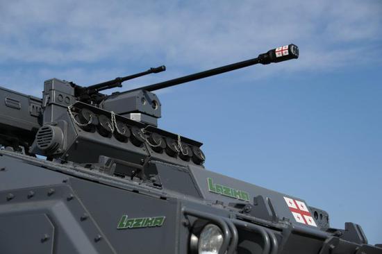 Как сообщает Минобороны Грузии, «бронетранспортер «Лазика» оснащен модулем дистанционного управления вооружением, управлением ведения огня. Он вооружена пушкой 23-мм, пулеметом 7,62 мм. Дневные и термические камеры позволяют обнаружить противника и днем и ночью дистанционно, и вести огонь при любых мете реологических условиях.