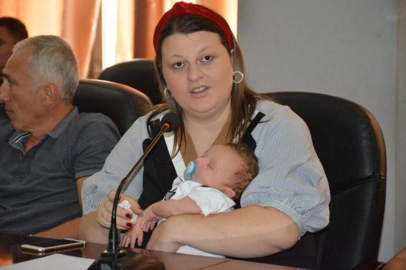 Недавно в фейсбуке появились фотографии Саломе Пацация, которая участвует в работе заседания зугдидского горсовета с младенцем на руках.