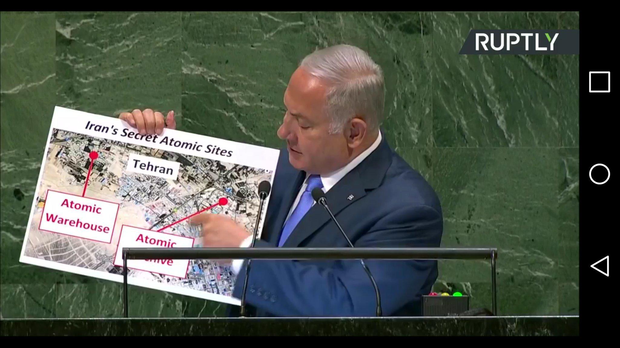 Позабавил в Нью Йорке лидер еврейского государства Биби, с картинками для дебилов, про то, что маленькое, и очень миролюбивое гос-во, со всех сторон окружено врагами во главе с очень плохим и коварным Ираном...:-)