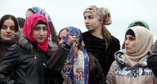 Девушки на демонстрации в Грозном. 18 марта 2015 года. Фото Ахмеда Альдебирова для "Кавказского узла"