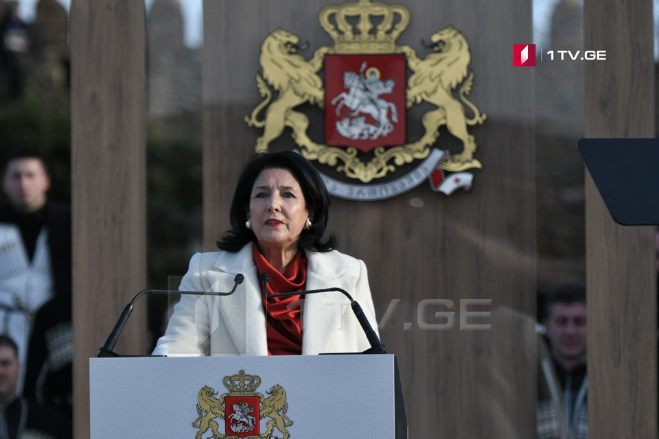 «Я, Президент Грузии, перед Богом и народом клянусь, что буду защищать Конституцию Грузии, независимость, целостность и неделимость страны, добросовестно исполнять обязанности Президента, заботиться о безопасности и благосостоянии граждан моей страны, о возрождении и могуществе моего народа и Отечества», – произнесла Зурабишвили слова клятвы, положив правую руку на Конституцию и Библию.