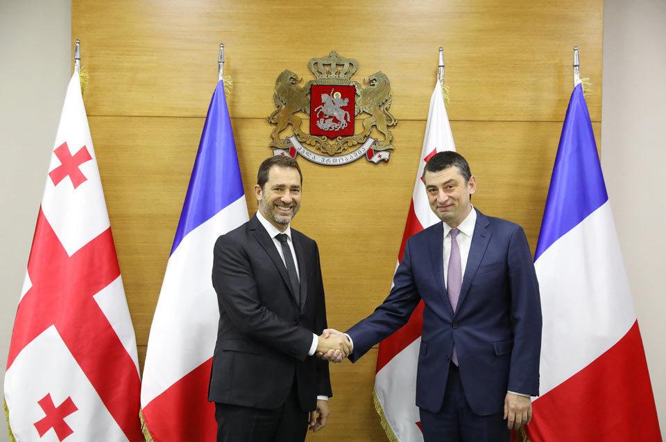 Из видеоматериала Первого ТВ Грузии: министры ВД Грузии и Франции Георгий Гахария и Кристоф Кастанер.