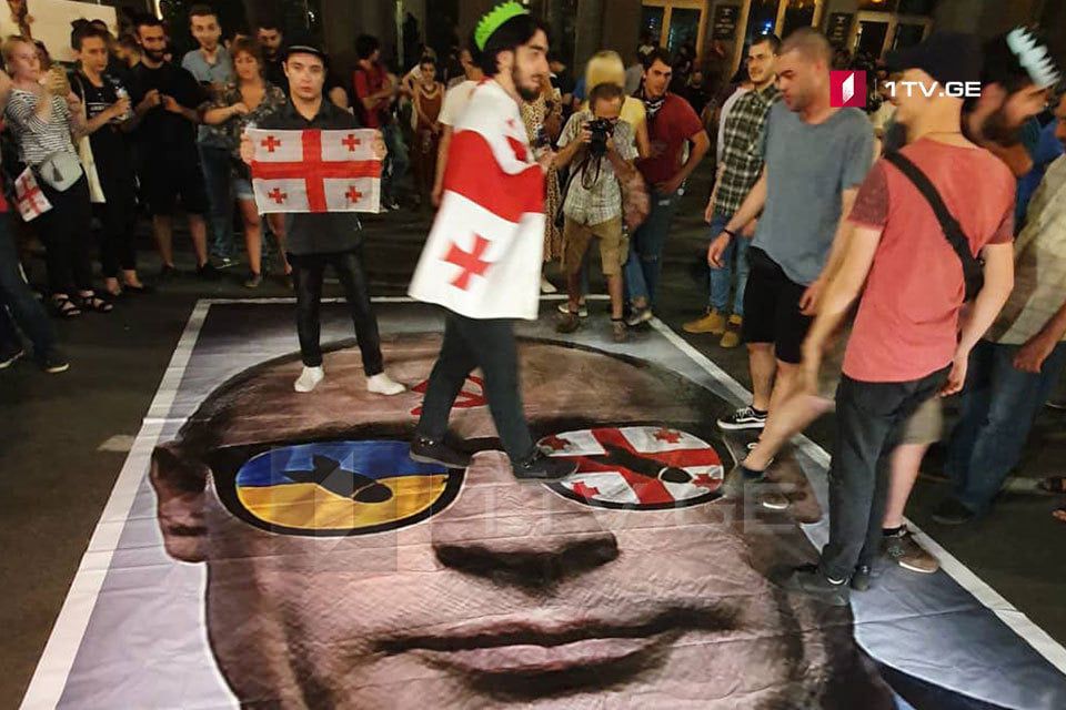 Источник: Из видеоматериала Первого ТВ Грузии: https://1tv.ge/ru/news/na-akcii-pered-parlamentom-po-banneru-putina-proshlis-nogami/