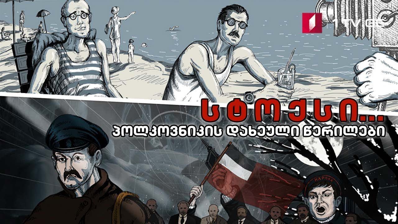 Надпись на грузинском: Стокс. "Разорванные письма полковника"... Из видеоматериала Первого ТВ Грузии