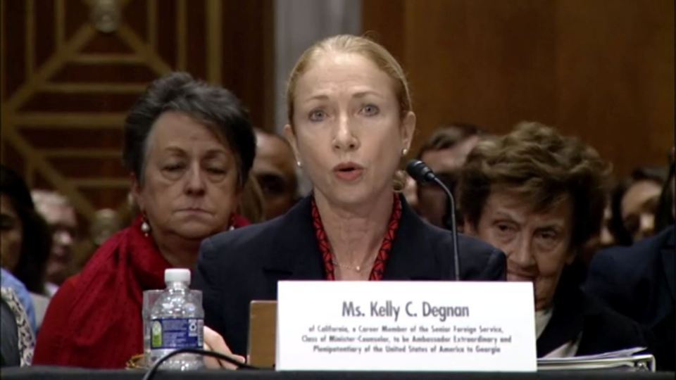 «Наше отличное сотрудничество в сфере безопасности подчеркивает тот факт, что Грузия является важным партнером в стратегическом регионе и она жизненно важна для США. Мы продолжим твердо поддерживать Грузию, в то время, как она проводит необходимые реформы для вступления в НАТО и экономической интеграции с Европейским союзом и Западом», — заявила представленная на пост посла США в Грузии Келли Дегнан заявила в своем выступлении в Ккомитете Сената США по внешним связям.Кенни Дегнан.