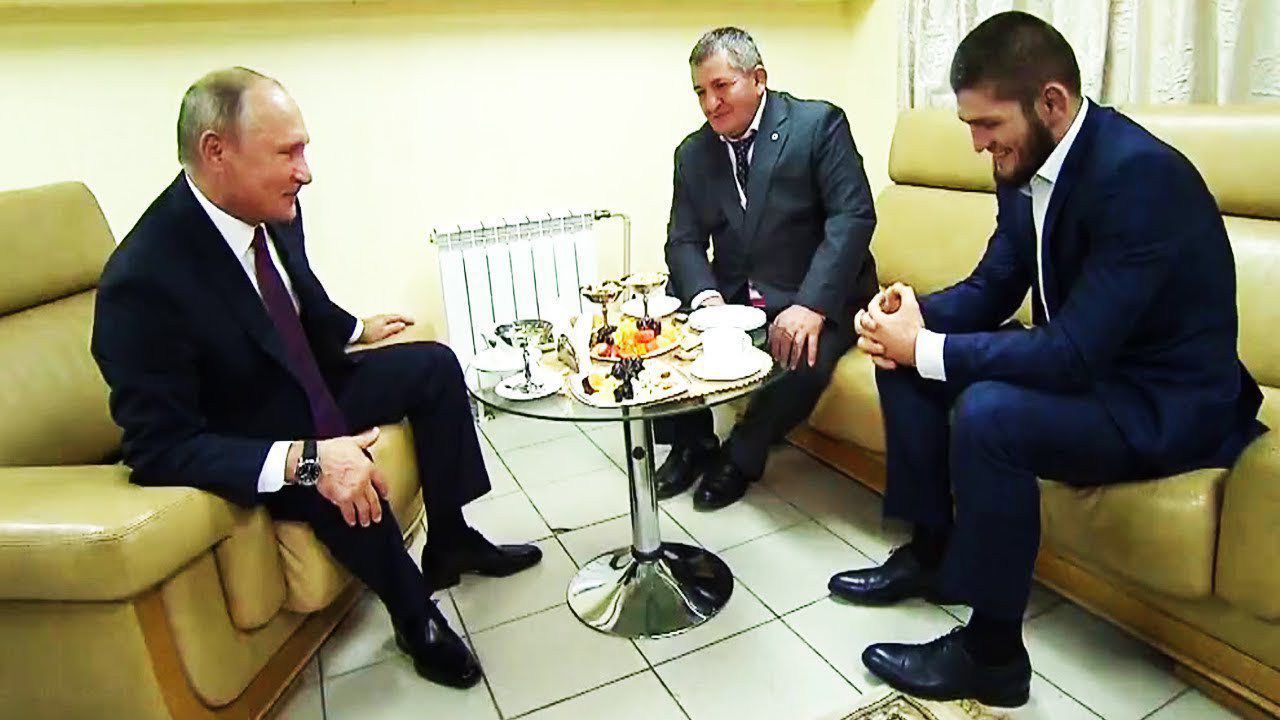 Источник: https://www.youtube.com/watch?v=R98XmqOXAH4 Путин встречается с Хабибом и Адулманалом Нурмагамедовыми