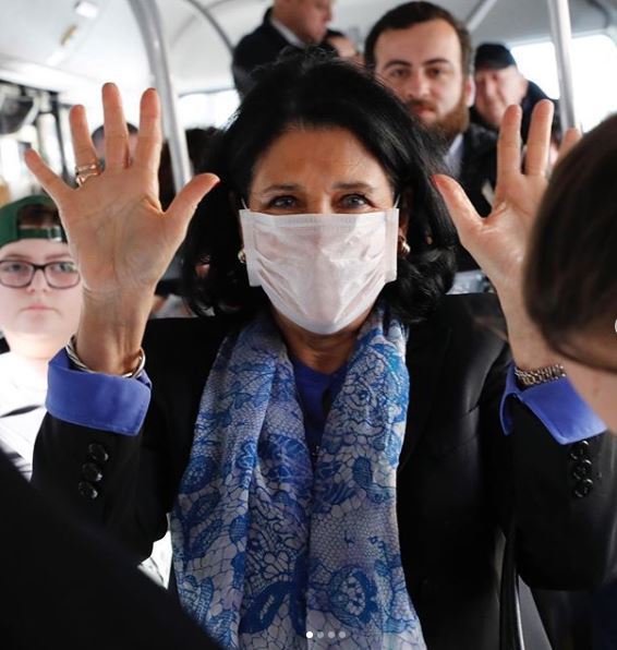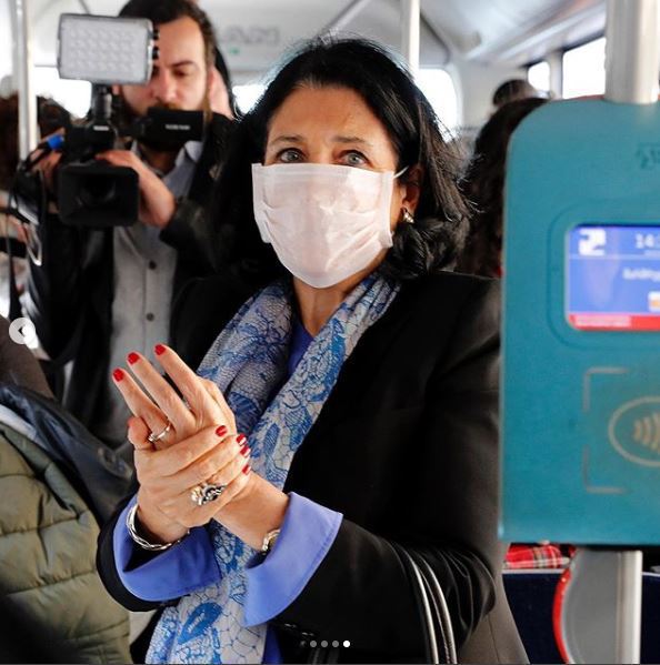#SafetynotFear! (Безопасность, но не страх) — под таким девизом президент Грузии Саломе Зурабишвили инициировала в социальной сети кампанию в связи с коронавирусом. В Instagram Зурабишвили опубликованы фотографии ее поездки в общественном автобусе. Президент на фотографиях в медицинской маске.