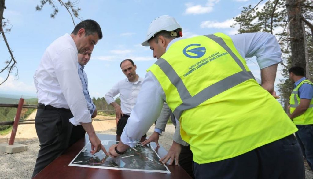 Глава Департамента автодорог Грузии Ираклий Карселадзе ознакомил премьер-министра с текущими работами на участке протяженностью 1,9 км, где будет построен 420-метровый мост, который будет иметь самые высокие опоры в Грузии.