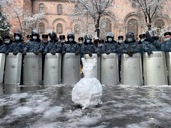 отрывок: "В Ереване митинги за отставку премьер-министра Никола Пашиняна. Если смотреть на это со стороны, такое чувство, что в центре Еревана - никак не "народная дубина" и пока - совсем не то, что может заставить нынешнюю власть отступить.