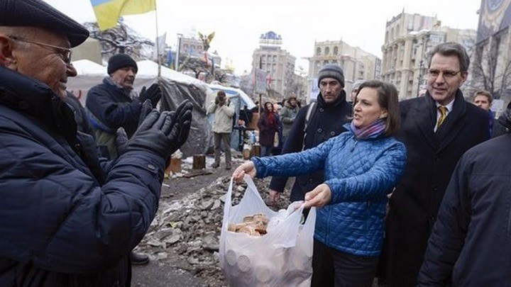Все помнят Вику Нуланд, раздающую булочки и печеньки в центре Киева, гордым борцам за прогресс и демократию.