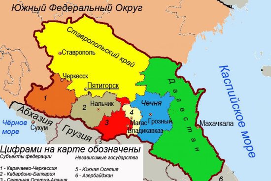 Источник: википедия. Северо-Кавказский Фед.фед. округ. Территория: 170 тысяч. Население - около 10 млн чел.