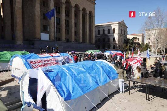 Итак, в самом центре Тбилиси, у здания парламента, развёрнуты палатки и полиция не препятствует подобному, как это было совсем недавно.