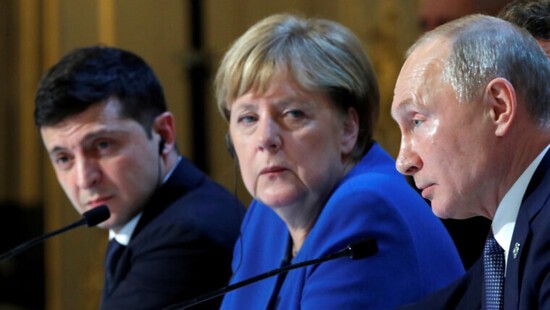 Владимир Зеленский, Ангела Меркель и Владимир Путин. Фото: REUTERS/Charles Platiau