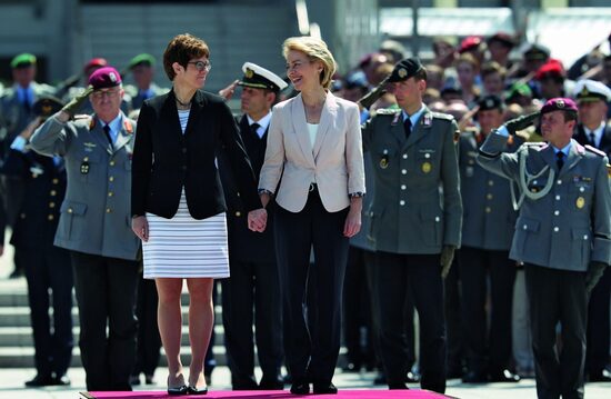 https://www.eurotopics.net/de/223614/wie-gut-ist-akk-als-verteidigungsministerin Бывший и нынешний министры обороны ФРГ - Аннегрет Крамп-Карренбауэр и Урсула фон дер Ляйен.
