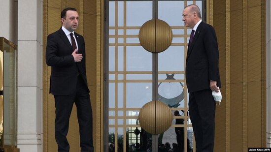 Источник: AFP Лидеры Грузии и Турции - Эрдоган и Гарибашвили. (архив)