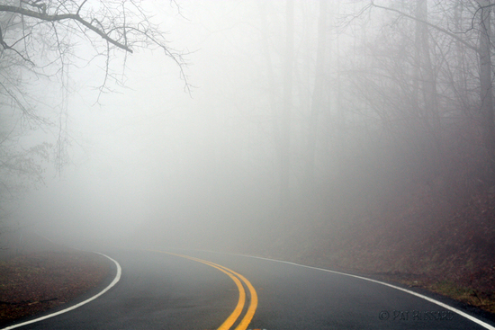 Очень сложно предугадать при таком тумане, особенно, когда едешь на высокой скорости, что ждёт за поворотом.