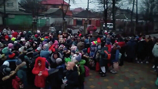 Эвакуация воспитанников Донецкой школы-интерната №1. Кадр видео