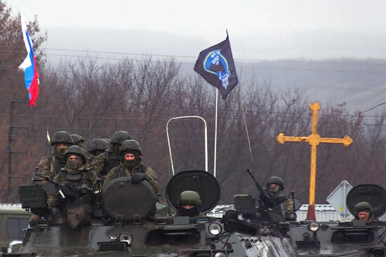 Военнослужащие ВС России перед встречей с подразделением Народной милиции ЛНР в поселке Новоайдар, 3 марта 2022 года.Пресс-служба Минобороны РФ/ТАСС