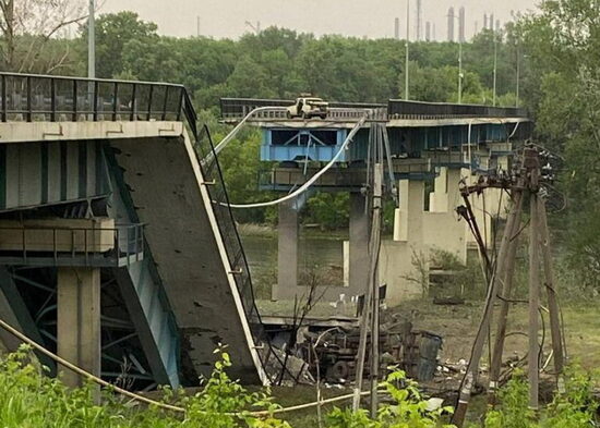 Фото: t.me/serhiy_hayday Взорванный мост между Северодонецком и Лисичанском.