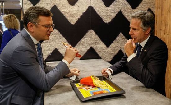 Дмитрий Кулеба и Энтони Блинкен в "Макдоналдсе". Видимо, важной скрепе "западного мира", по мнению многих ловцов стеклянных бус.