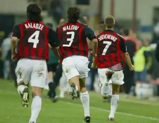 4. Каха Каладзе Динамо Тбилиси, Динамо Киев, Милан.  Считаю, что Каха был не самым талантливым, конечно, футболистом, но великий Лобановский сделал его очень крутым!  Помню то киевское Динамо... Шевченко -  Ребров -  Каладзе.. Они почти всех рвали тогда, а  какие рейды были у  Кахи...Супер - челнок! А потом, в Милане -  в топовом тогда клубе мира, Каладзе выиграл все, о чем только мечтать, и играл с монстрами... Барези, Костакуртой и Мальдини в обороне...