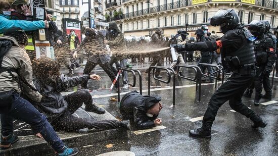 Нет, это не то, что вы подумали...Это Франция и разгон не "онижедетей и мирных демонстрантов", а "маргиналов и титушек"